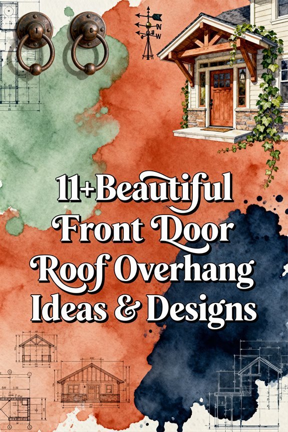 While traditional pitched overhangs emphasize vertical drama, flat roof extensions deliver horizontal emphasis that complements contemporary architecture through clean geometrical planes. You’ll achieve a modern aesthetic by extending your roofline 18-36 inches beyond the entry, creating distinct shadow lines that define the entrance without ornamental details.
