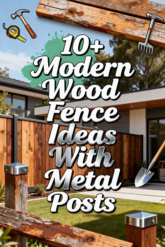 Combining wood with steel, aluminum, or concrete panels creates sophisticated fence systems that balance warmth against industrial strength. You’ll achieve industrial chic by alternating horizontal wood slats with metal frames or pairing vertical cedar boards with polished steel posts. These mixed-material designs offer superior durability—metal withstands moisture while wood provides natural insulation and visual softness.