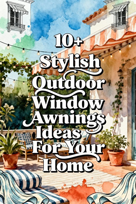 While many homeowners view window awnings as purely decorative elements, they’re actually high-performance architectural features that deliver measurable benefits. You’ll reduce cooling costs by 25-77% depending on window orientation, as awnings block solar heat gain before it penetrates glass. Current design trends favor retractable mechanisms and weather-resistant fabrics like solution-dyed acrylics that resist fading for 10+ years. Beyond energy efficiency, you’re protecting interior furnishings from UV damage while extending outdoor living space. Installation tips include ensuring proper pitch (minimum 15 degrees) for water runoff and securing mounting brackets into structural framing, not just siding. You’ll also boost curb appeal and property value—homes with quality awnings command 2-5% higher resale prices in competitive markets.
