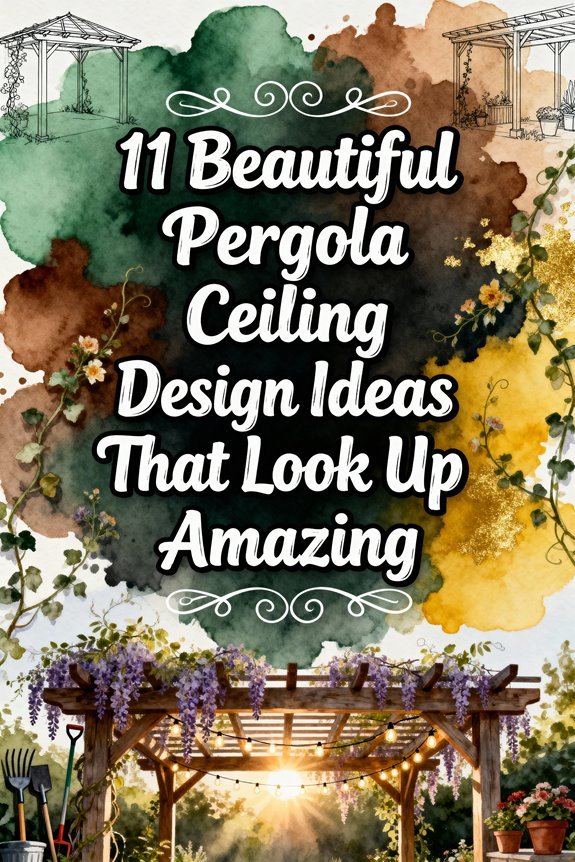 When timber beams span overhead at precise intervals, they create the quintessential pergola ceiling that’s defined outdoor living spaces for centuries. You’ll find traditional wood types like cedar, redwood, and pressure-treated pine deliver exceptional performance through distinct grain patterns and natural durability characteristics. Cedar resists decay while redwood offers superior dimensional stability. Space slats 12-18 inches apart for balanced shade coverage—closer intervals increase protection but reduce airflow.