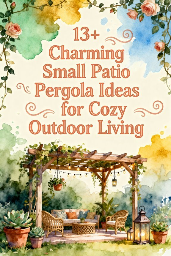 Privacy screens transform exposed pergolas into secluded retreats by establishing vertical barriers that block sightlines without sacrificing airflow. You’ll achieve ideal privacy enhancements by mounting lattice panels, slatted wood sections, or metal grilles along one or more pergola sides. Position screens strategically—install them on boundaries facing neighboring properties or high-traffic areas while leaving other sides open for views you want to preserve.